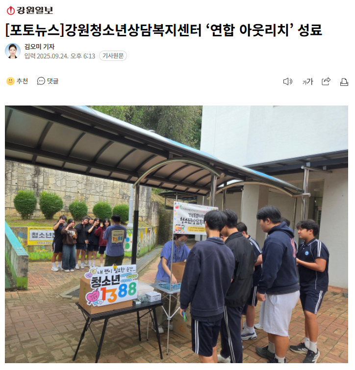 [강원일보] 강원청소년상담복지센터 ‘연합 아웃리치’ 성료 ◀기사 원문 클릭