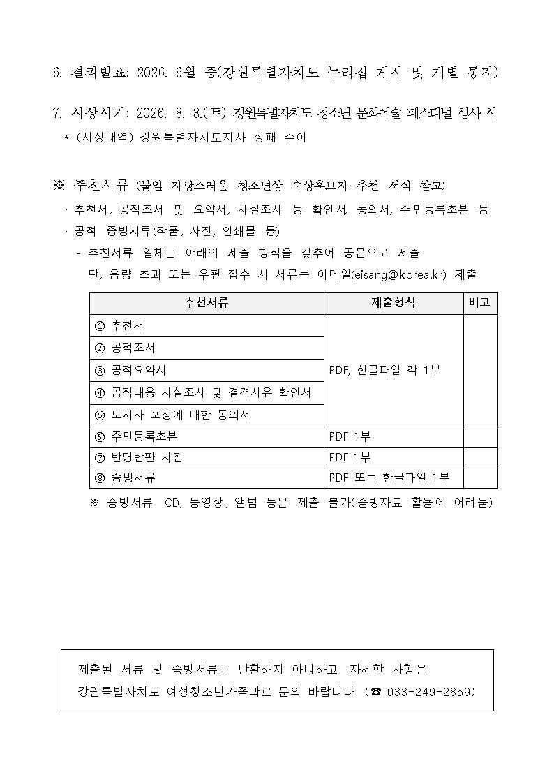 제27회 강원특별자치도 자랑스러운 청소년상 수상후보자 추천 공고